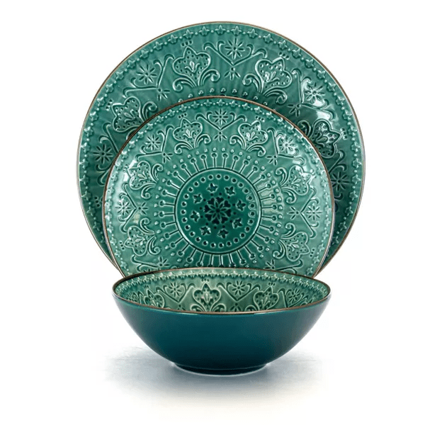 Home > 16pc Stoneware Mural Dinnerware Set Teal