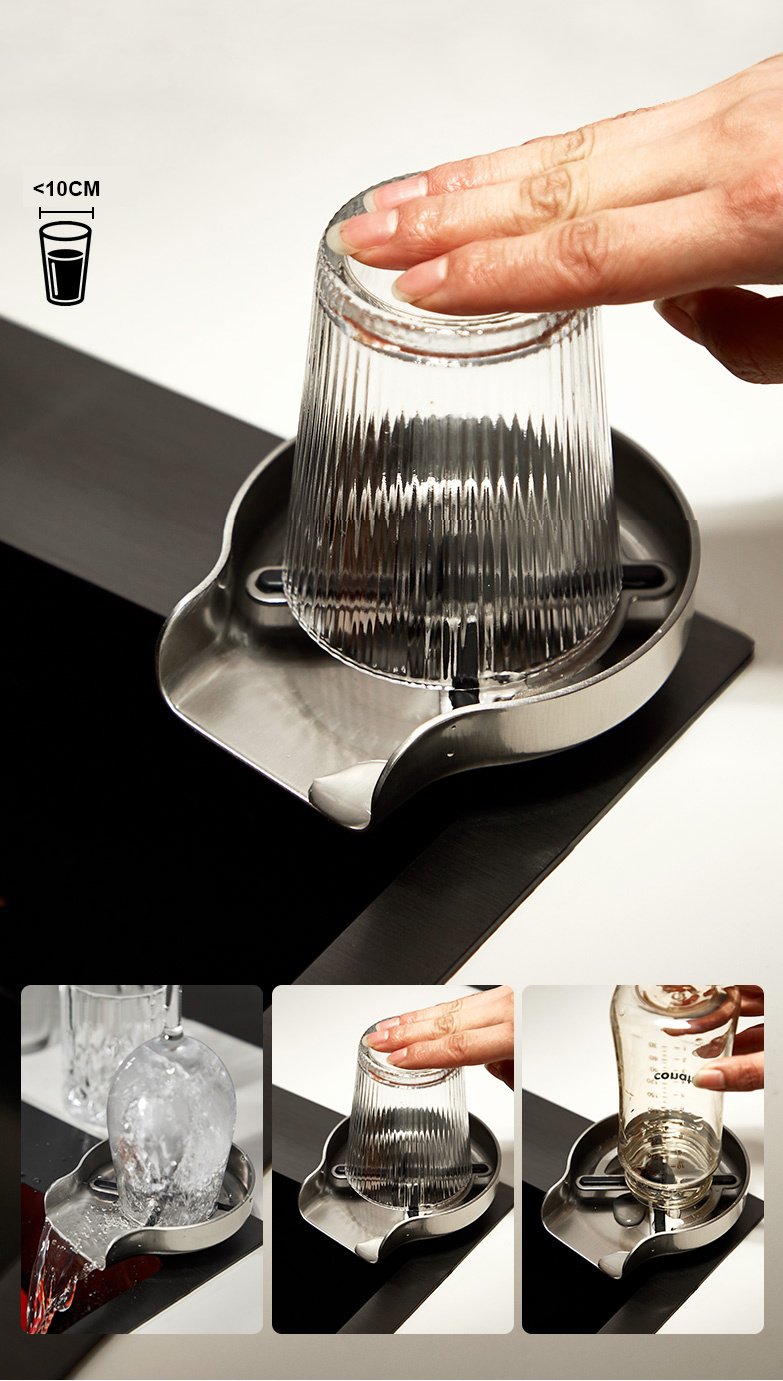 Simple DIY Replacement For A Sink Sprayer; Soap Dispenser Or Sink Hole Cover. Can Rinse Most Standard Cups; Including Wine Glasses; Baby Bottles; And Travel Cups.Minimum Cups Opening Size Is 1" In Diameter And Maximum Cups Opening Size Is 4".