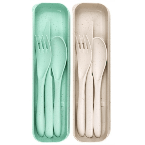 Home > 2 Pack Reusable Travel Utensils Set with Case, Wheat Straw Portable Knife Fork Spoons Tableware, Eco-Friendly Cutlery for Kids Adults Travel Picnic Ca