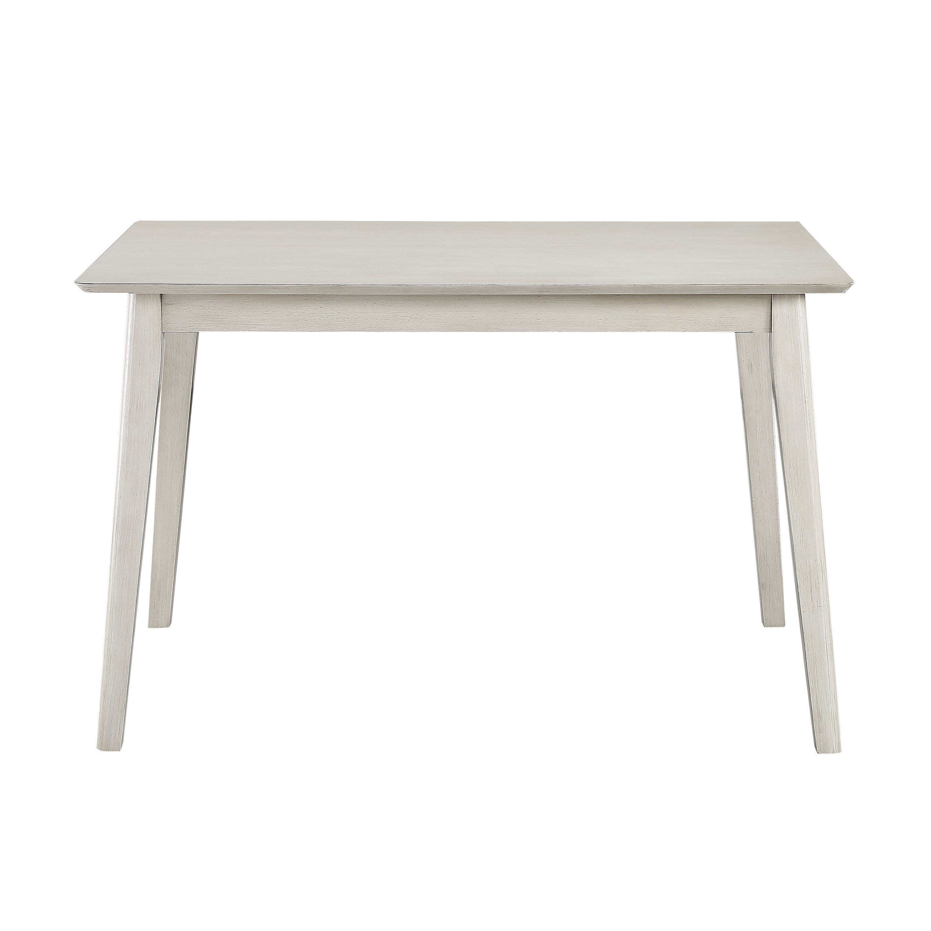 Seating four with ease, the Anderson Collection will be the perfect addition to your casual dining space. The rectangular table features acacia veneer that is finished in an antique white. The accompanying wood framed chairs feature gray linen-like seats that perfectly pair with the rectangular table, completing the transitional look of this 5-piece packed set.PRODUCT DIMENSIONS: TABLE: 48" x 36.5" x 30"HApron to floor: 26.5"Distance between legs from the shorter side: 31.5"Distance between legs from the longer side: 43.5"CHAIR: 18" x 22.5" x 38.5"HSeat Width: 18"Seat Depth: 16"Seat Height: 19.5"Listing Includes: 5pc Dining Set (1 Table and 4 Side Chairs) Only.Simple Assembly Require.