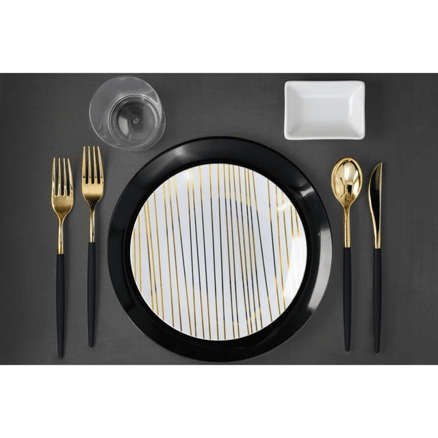 ✔️ disposable utensils: what makes these gold and black plastic spoons so incredible is that after using them to dress up your room, there is no need to stand and wash dishes. The garbage bin is the place to go for these disposable utensils. While you can reuse if you wish, save yourself the hassle and toss when you finish using.