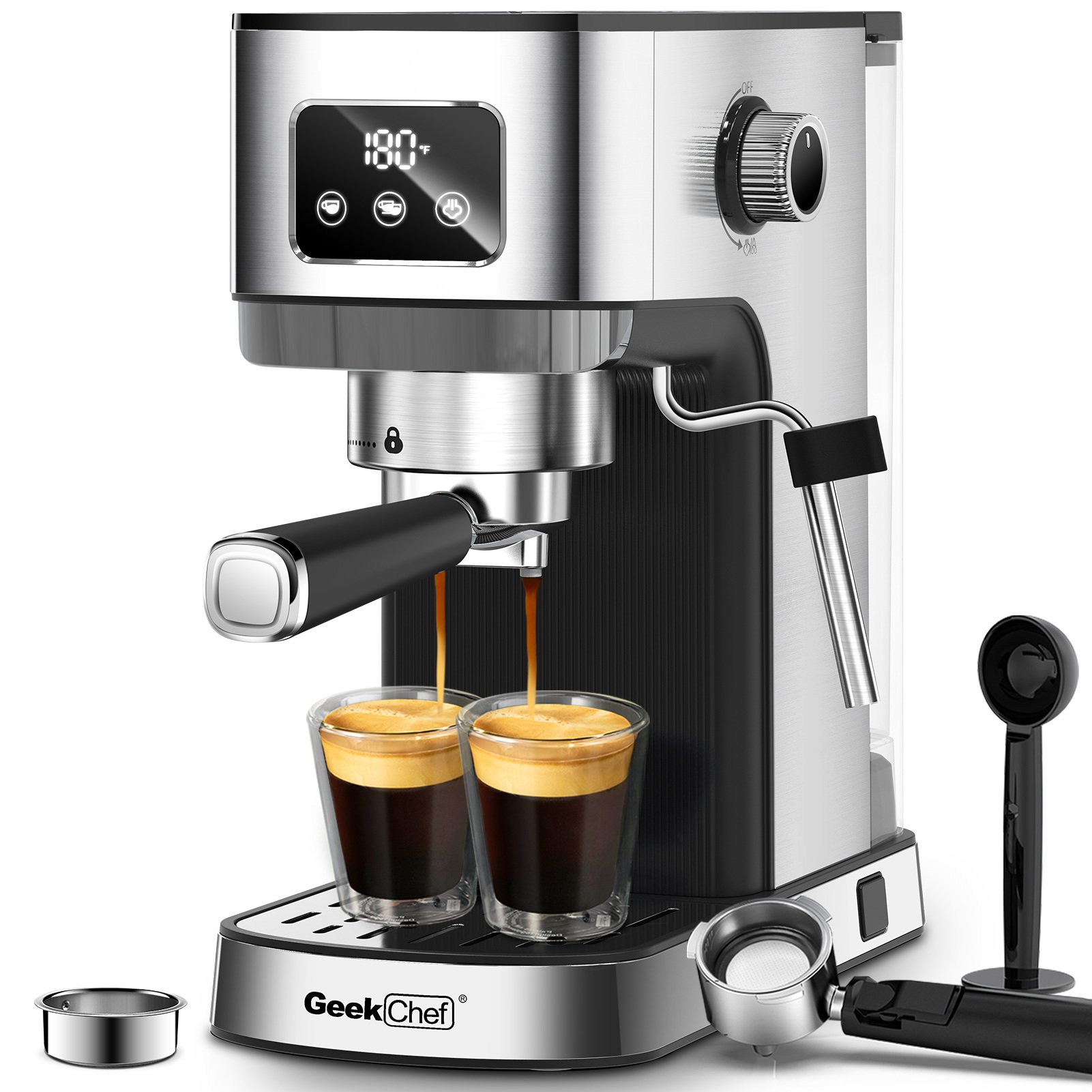 Home > Geek Chef Espresso Machine, Cappuccino & Latte Machine with ESE POD Filter & Milk Frother Steam Wand, Accurate Temperature & Time Control, Compact Cof