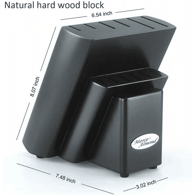 Wooden knife block holds every knife in the slot to keep your kitchen countertop from getting messy.