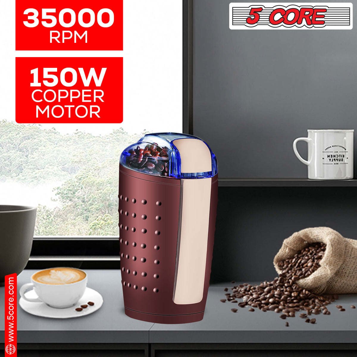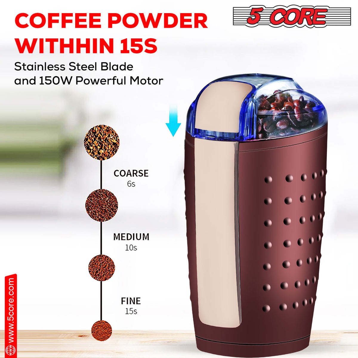 Quick and Powerful Coffee Grinder: Powered by 150W, this coffee maker has a heavy-duty copper motor that grinds coffee beans super fast while preserving the natural aroma and flavor. It has a large 85 grams or 3 Oz capacity. The powerful motor can pulverize herbs, spices, and grains.