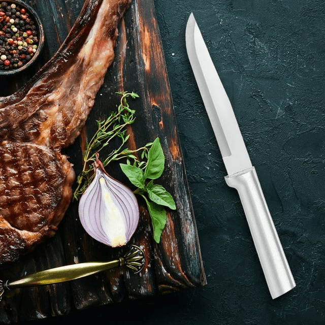 Rada stubby butcher knife! The rada stubby butcher knife is a versatile knife that you'll find yourself reaching for again and again. Crafted of stainless steel, it features a 5-3/8" blade that makes it an all-purpose tool for your kitchen. Many uses - from cutting ribs and slicing fruit to cutting into desserts silver brushed aluminum handle, stainless steel blade blade 5-3/8"L overall 9-7/8"L practical quality from rada rada knives are some of the finest on the market. Meticulously crafted one at a time, using a dozen or more steps.
