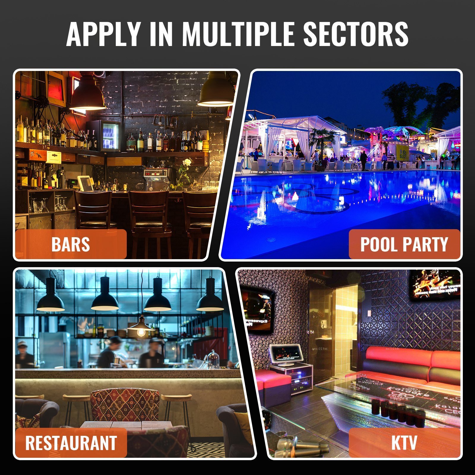 5.Make Any Home or Bar Stand Out: This bar bottle display creates a fun ambiance and grabs your guests' attention. Not only applicable in your home, but this product is also suitable for public areas such as commercial bars, clubs, KTV, pool parties, etc. Look no further than VEVOR's bar shelf. Let's enjoy the light show!